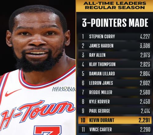 北京时间1月29日,火箭被马刺逆转结束二连胜。这场比赛是凯文-杜兰特的生涯之夜,他的三分球命中数来到2291+升至历史第十位。此役火箭一度领先马刺16分之多,在末节马刺已经完成反超,马刺拉开到10分以上直接打崩了火箭。