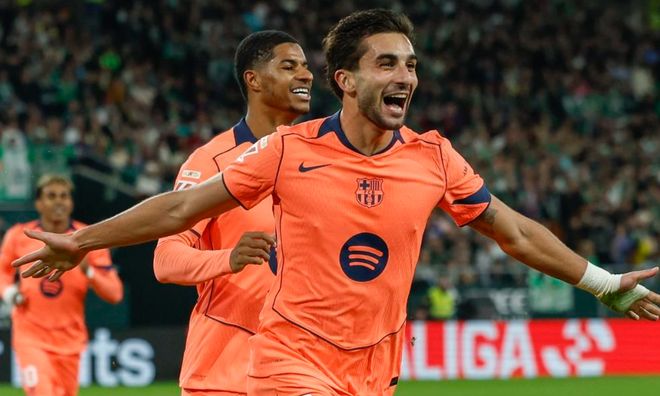 比赛刚开始6分钟,巴萨就丢球了。安东尼在门前抓住机会,转身抽射破门。皇家贝蒂斯取得梦幻般的开局。不过,5分钟后,巴萨就扳平比分。孔德在禁区右侧送出横传,费兰包抄射门打进。只过了2分钟,巴萨再次进球!巴尔德吉在右侧起球传中,费兰-托雷斯侧身凌空抽射,球又进了!费兰-托雷斯连进2球帮助巴萨反超比分!